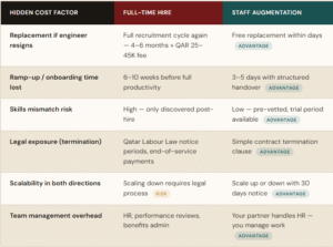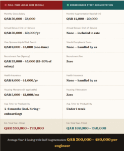 التكلفة الحقيقية: Full Cost Comparison Hiring In-House vs. IT Staff Augmentation in Qatar